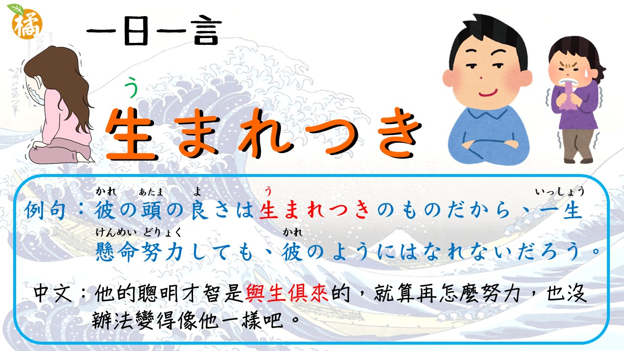 - 「生まれつきのもの」:與生俱來的東西,天生的。